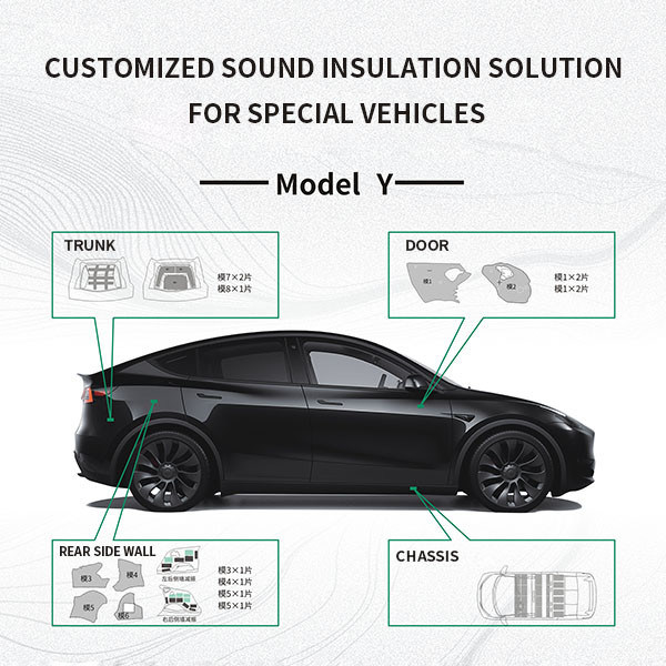 En s'attaquant à ces zones avec des matériaux d'isolation acoustique de haute qualité, les propriétaires de Tesla Model Y peuvent profiter d'une expérience de conduite plus paisible, confortable et agréable.tout en bénéficiant d'une meilleure efficacité énergétique et d'une protection à long terme de la cabine.