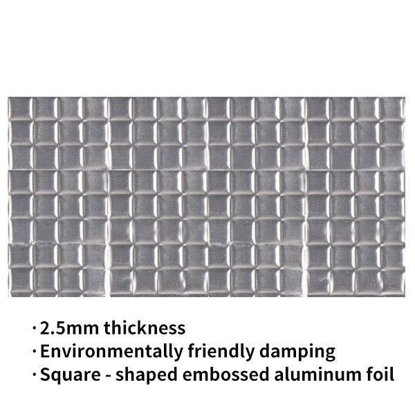 1. épaisseur 2,5 mm/avec une feuille d'aluminium en relief carré sur la surface + adhésif amortisseur + papier kraft à libération d'huile de silicone à une face (sans logo).