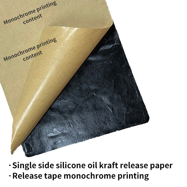 1. 2,5 mm d'épaisseur de tampon d'amortissement des vibrations / feuille d'aluminium de surface + gravure carrée + couche d'amortissement respectueuse de l'environnement + papier kraft à libération d'huile de silicone unilatérale (avec impression)