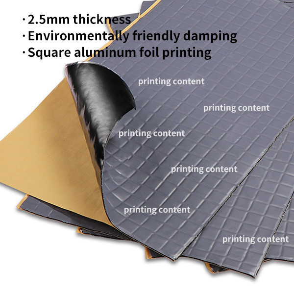 1Épaisseur 2.5mm / automobile vibration reduction pad / square embossed aluminum foil + ROHS environmentally friendly damping adhesive + single-sided silicone oil white release paper (without release paper printing).